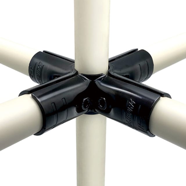 The HJ-5 metal joint is specifically engineered to connect 28mm ABS-coated pipes, allowing businesses to create custom modular structures such as workstations, material handling trolleys, storage racks, and flow rack systems. The joint uses a bolt-tightening mechanism, which eliminates the need for welding and enables quick installation and easy modifications.