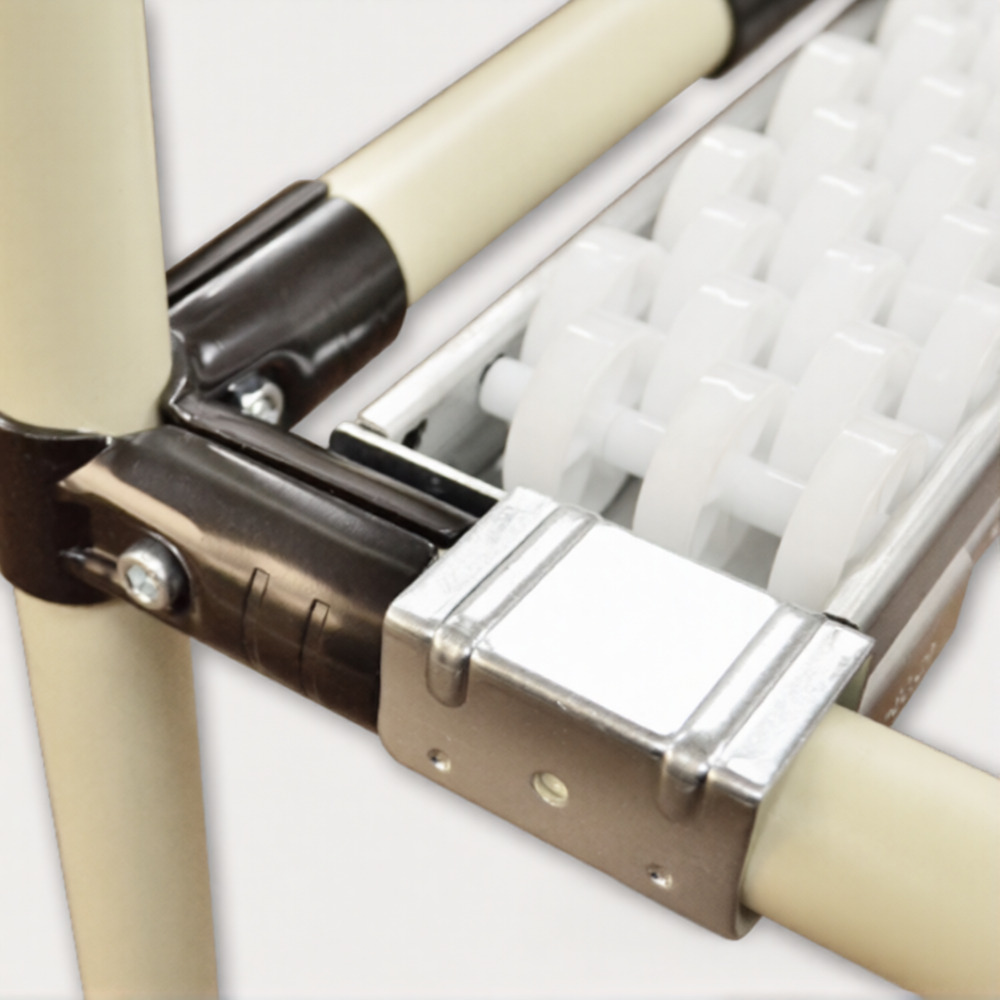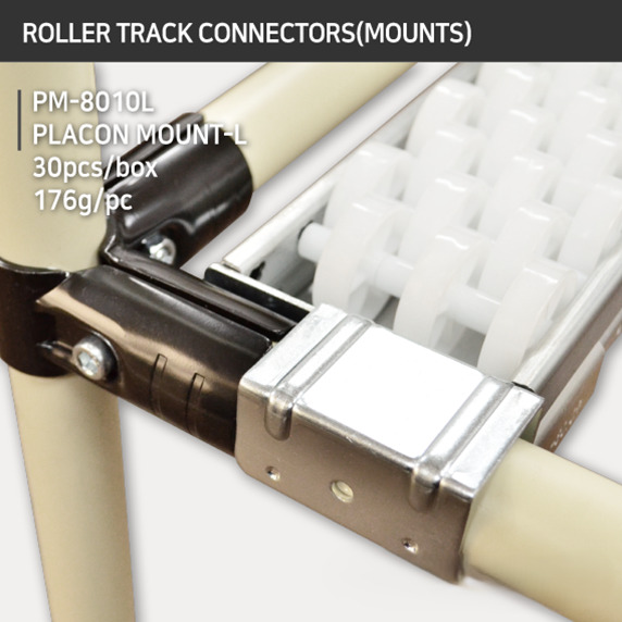 Placon mounts act as connectors between roller tracks and structural frames, making them essential components in lean manufacturing and warehouse setups.